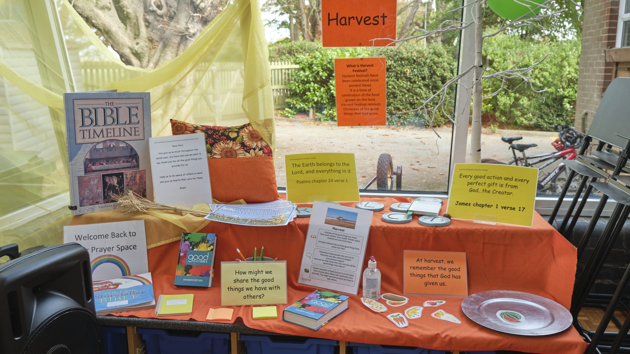 As the title suggests, a permanent prayer space is one that’s available for people to use throughout the school year. It may be in the corner of a classroom, in the hall or a space set aside in the library, or even in a designated room.